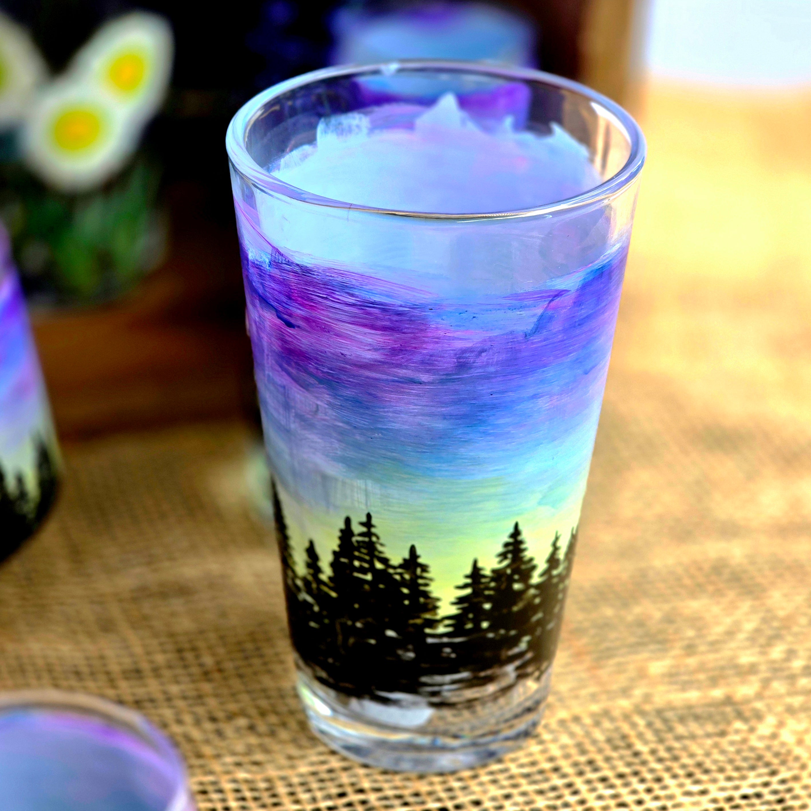 Pint glass with "Northern Lights" from the Skyline Collection