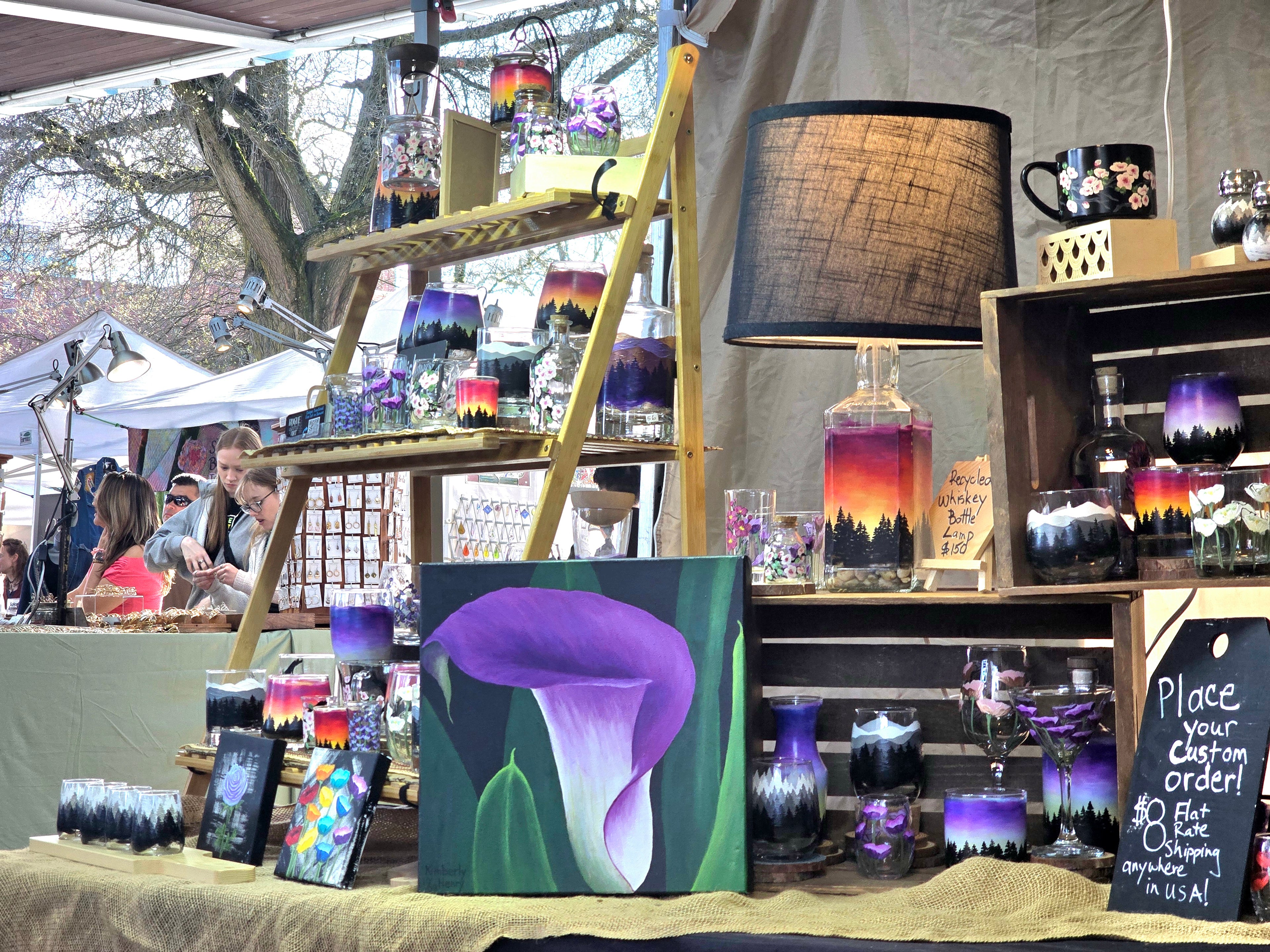 Hello and welcome! I'm Kimberly, creator and owner of Rogue Spirits Arts; functional fine art on glass and barware, located in Vancouver, WA. My goal is to share a new way to connect with art while making it affordable and accessible for everyone. All original, hand-painted glass pieces are 100% dishwasher safe. I use multi-surface acrylic for my work, then cure each item to withstand the high temperature and pressure of your dishwasher. My art is made to be used and enjoyed.
