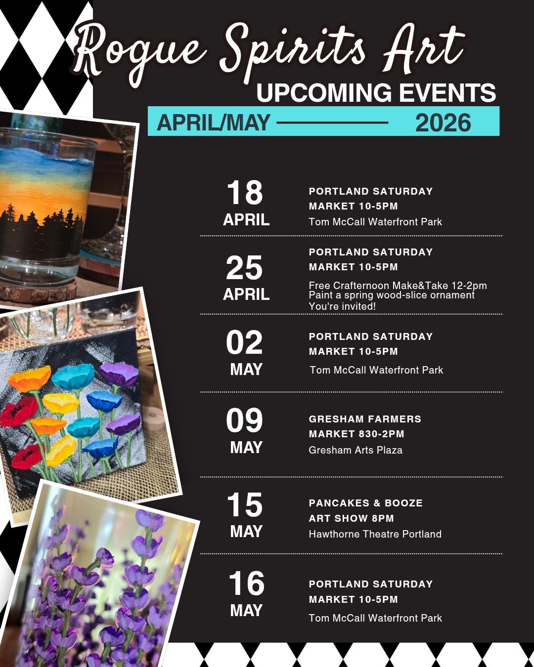 Hello and welcome! I'm Kimberly, creator and owner of Rogue Spirits Art; functional fine art on glass and barware in Vancouver, WA. My goal is to make art affordable for everyone, while bringing all of the benefits of art into every day life. All original, hand-painted glass pieces are 100% dishwasher safe and made to be used and enjoyed. Please contact for any questions, inquiries, quotes or collaborations!
